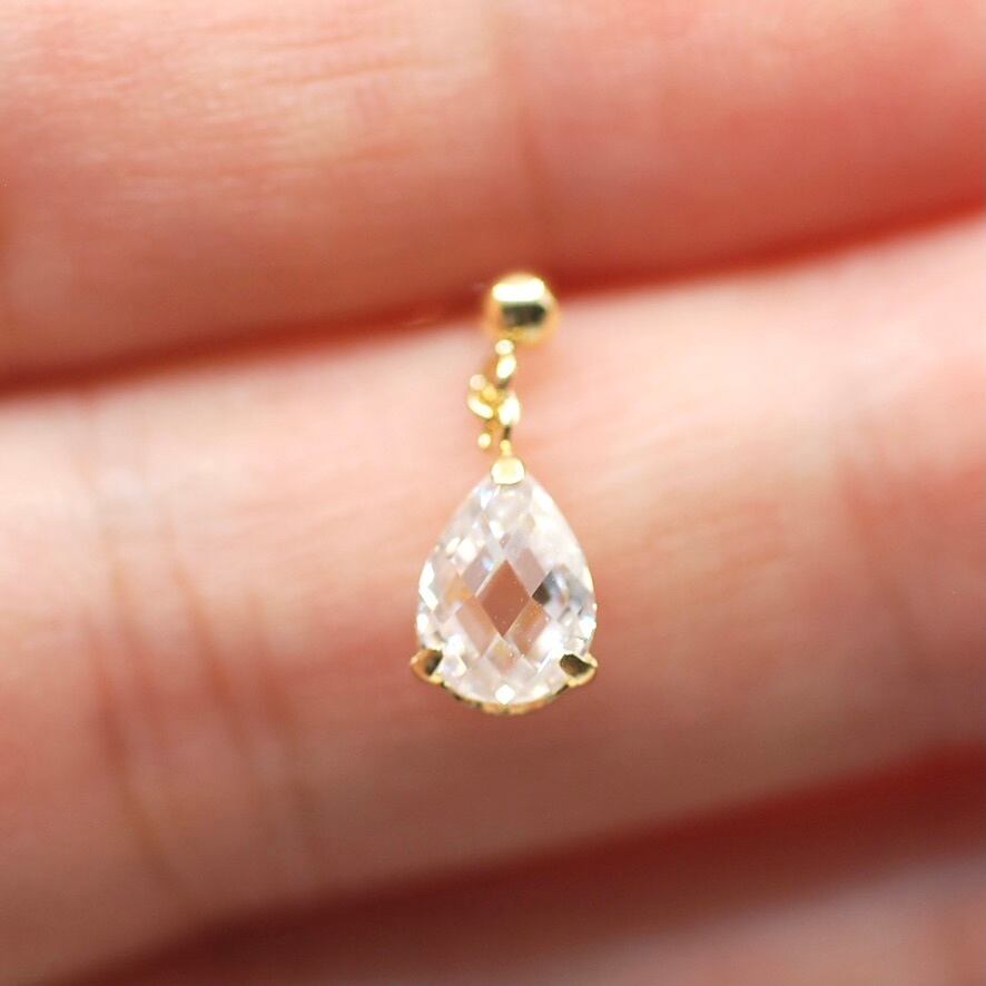 こちらは18KYGのスタッドピアスにモアサナイトを揺れるように加工しました。